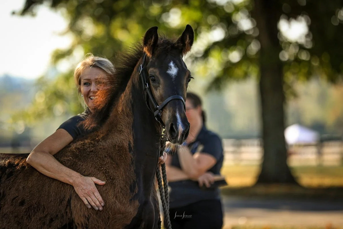 Our Young Horse Raising Program is structured to allow for the growing horse to be a horse. Youngsters are grouped in small herds, where they learn important herd dynamics that will stay with them throughout their lifetime. They learn how to use their bodies on our gently rolling hills - building a strong and athletic foundation that is invaluable to them as future athletes. They are extensively handled, regularly groomed and taught invaluable ground lessons - focusing on reinforcing trust, confidence, and respect - preparing them for their lives as a riding horse.